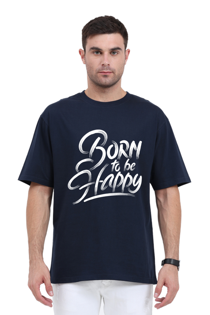 Born to Be Happy Oversized T-Shirt – 100% Cotton, Motivational Tee (Black & Navy Blue)